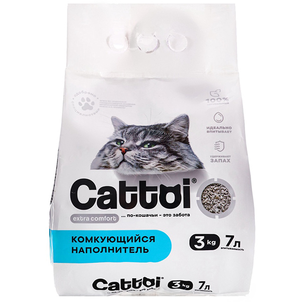 Наполнитель Cattoi Extra Comfort 3кг минеральный комкующийся,пластиковый пакет