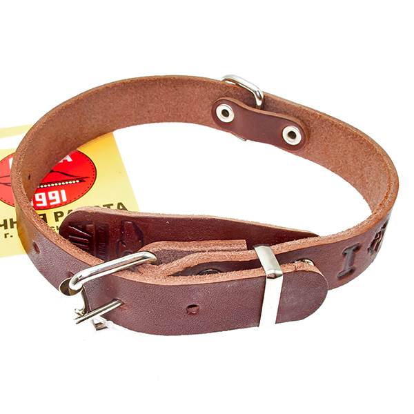 Ошейник кож. 20/1 кожа тиснение, размер 30-41 см.