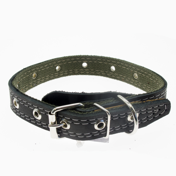 Ошейник кожаный 15/2 черн. простроченный Jack&King