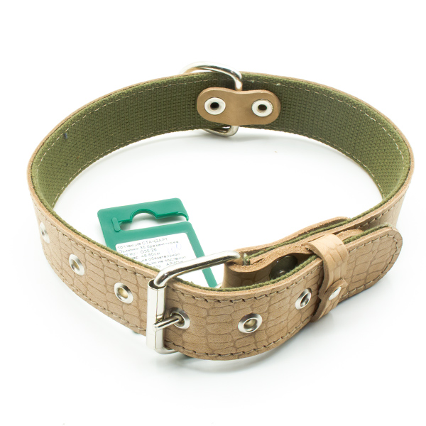 Ошейник кож. 45 кожа/брезент усил на привязь, размер 45-60 см.