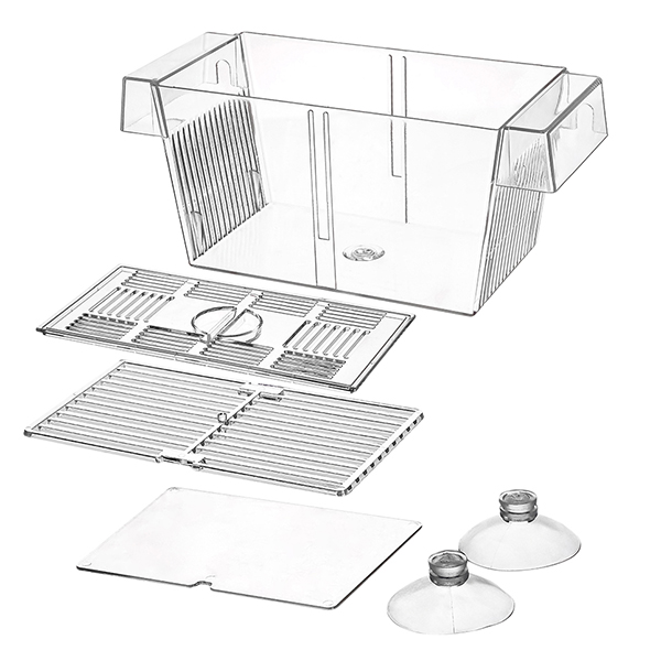Отсадник для аквариумов 23х10х10 см. Крепится присоской к стеклу аквариума. Остадник помогает содержать мальков в общем аквариуме, изолирует слабую, либо травмированную рыбу. Вес: 0,23 кг. Упаковка: по 1 шт