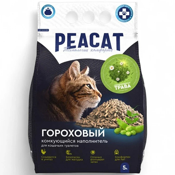 PEACAT напол.комкующийся из горохового волокна СВЕЖЕСКОШЕННАЯ ТРАВА 5л(2,5кг)