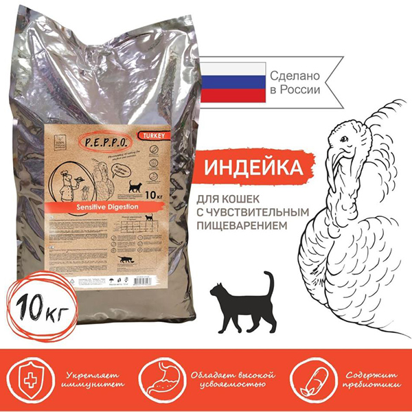 ПЕППО сух. д/кошек Чувств. пищеварение 10 кг Индейка