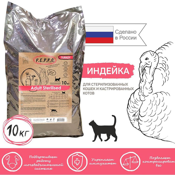 ПЕППО сух. д/кошек Стерил. 10кг Индейка