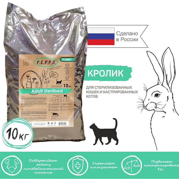 ПЕППО сух. д/кошек Стерил 10кг Кролик
