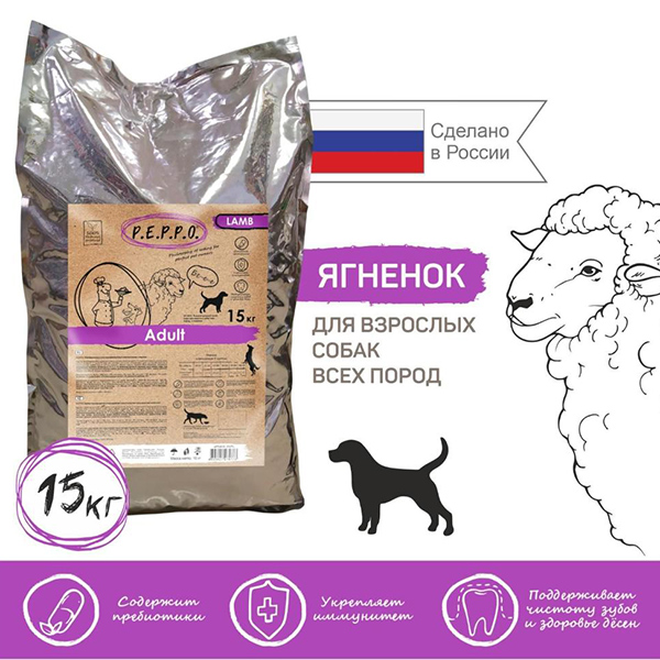 ПЕППО сух. д/соб. Эдалт 15кг Ягненок