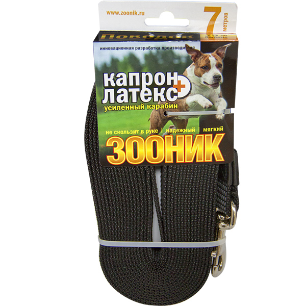 Поводок капроновый д/соб двойная латекс.нить 7м*25мм, усилен.карабин, черн., (Зооник)