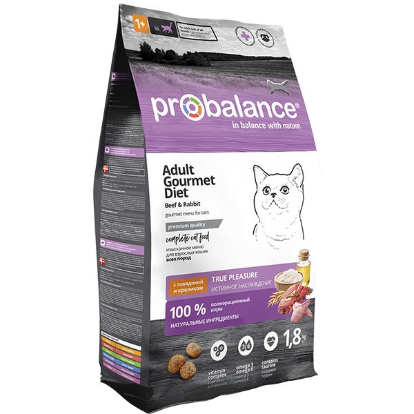 ProBalance корм сух.д/кошек 1,8кг Gourmet Diet с говядиной и кроликом СРОК РЕАЛ 08.26