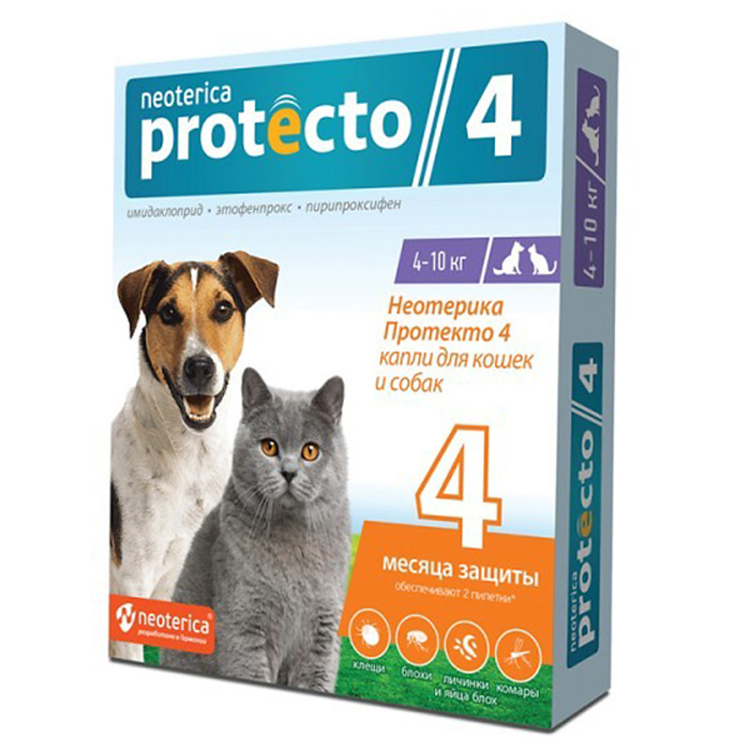 PROTECTO капли п/блох для кошек и собак 4-10кг(2 пипетки)