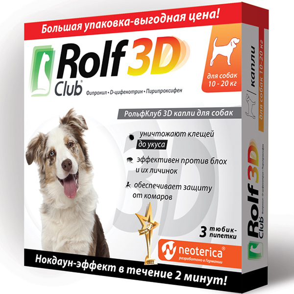 Рольф Клуб 3D Капли для собак 10-20кг 3 шт.