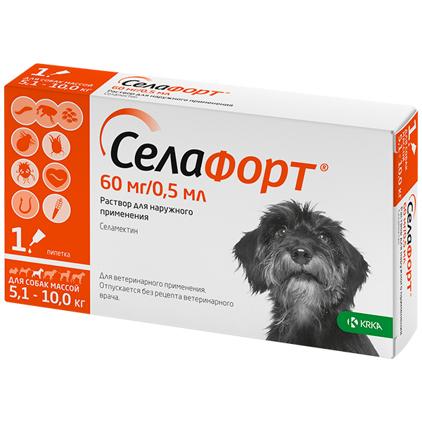 Селафорт для собак 5,1 - 10 кг, 1*60 мг/0,5 мл