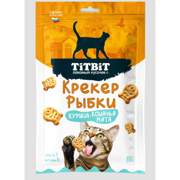 Титбит Крекер рыбки д/кошек со вкусом курицы+кошачья мята 80 г