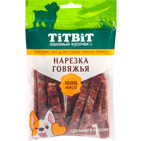 Титбит Нарезка говяжья для собак мини пород 70 г СРОК РЕАЛ. 07.02.26