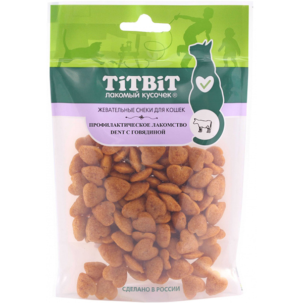 Титбит Снеки жеват. DENT д/кошек Профилактическое лакомство с говядиной 40г АКЦИЯ -20%