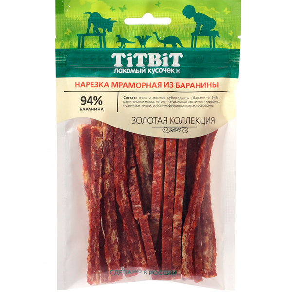 Титбит Золотая коллекция Нарезка мраморная из баранины для собак