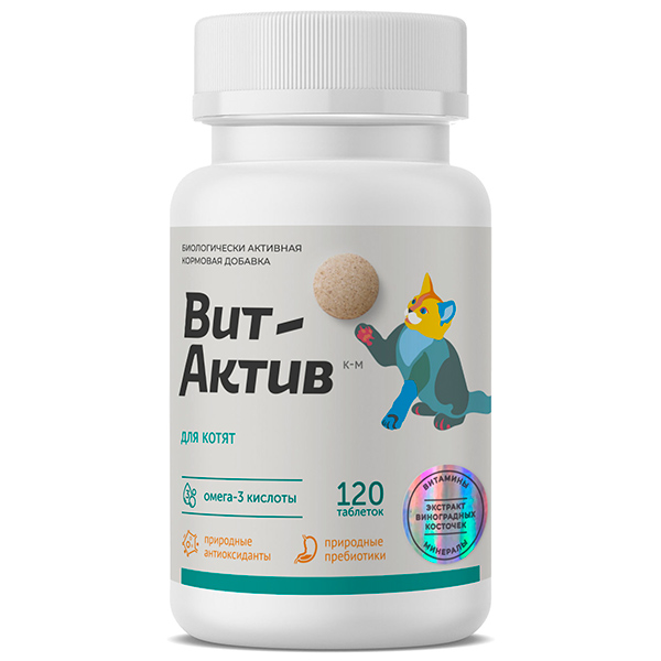 Вит-Актив для кошек К-М для котят 120 таб. корм. добавка акция -20% СРОК РЕАЛ 06.26