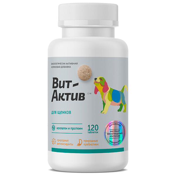 Вит-Актив для собак С-М для щенков 120 таб. корм. добавка СРОК РЕАЛ 22.02.26