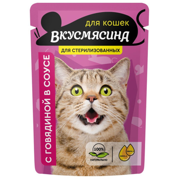 ВКУСМЯСИНА пауч 85 г для кошек стерилиз. Кусочки с говядиной в соусе СРОК РАЛ 02.26