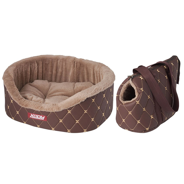 Лежак овальный стеган. 53*42*16см коричевый (хлопок дизайн, поролон)